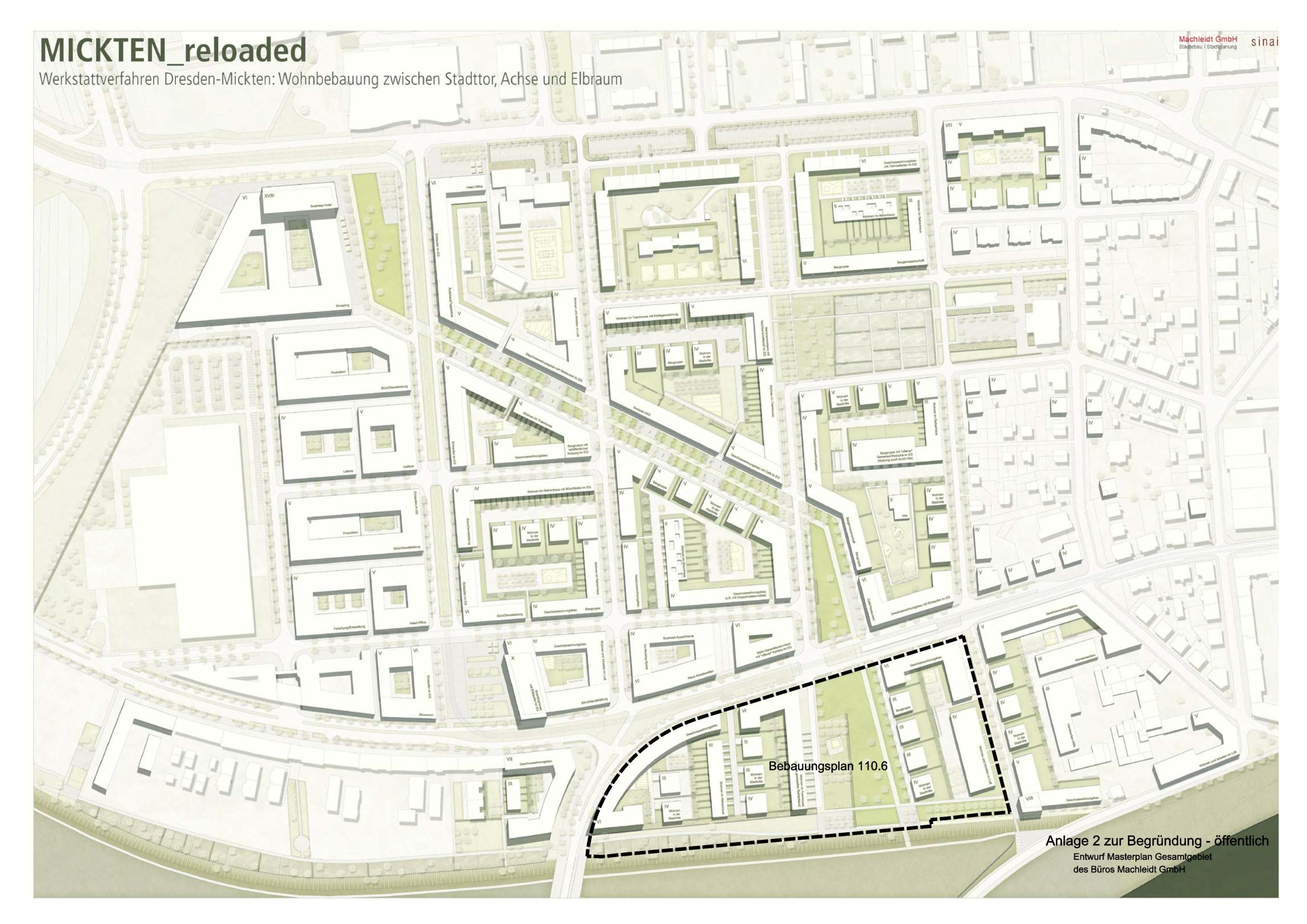 Die insgesamt unbefriedigende Entwicklung im Gebiet Kaditz/Mickten veranlasste die Stadtverwaltung dazu, über die Änderung der städtebaulichen Ziele nachzudenken. Aus einem Werkstattverfahren im Jahre 2012 ging ein Masterplan des Büros Machleidt GmbH, Berlin als Sieger hervor, der seitdem die Grundlage der weiteren Planungen im Gebiet Kaditz/Mickten bildet. Der Masterplan liegt auch dem vorliegenden Bebauungsplanentwurf zu Grunde.
