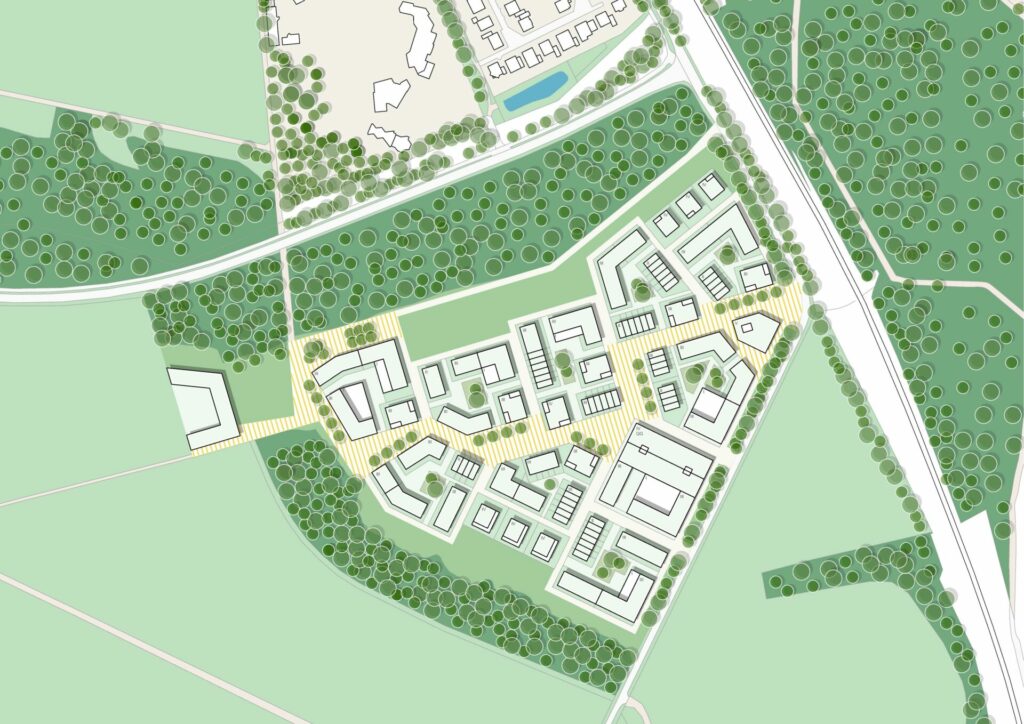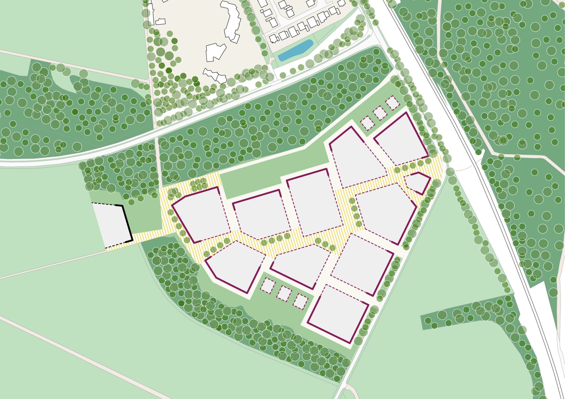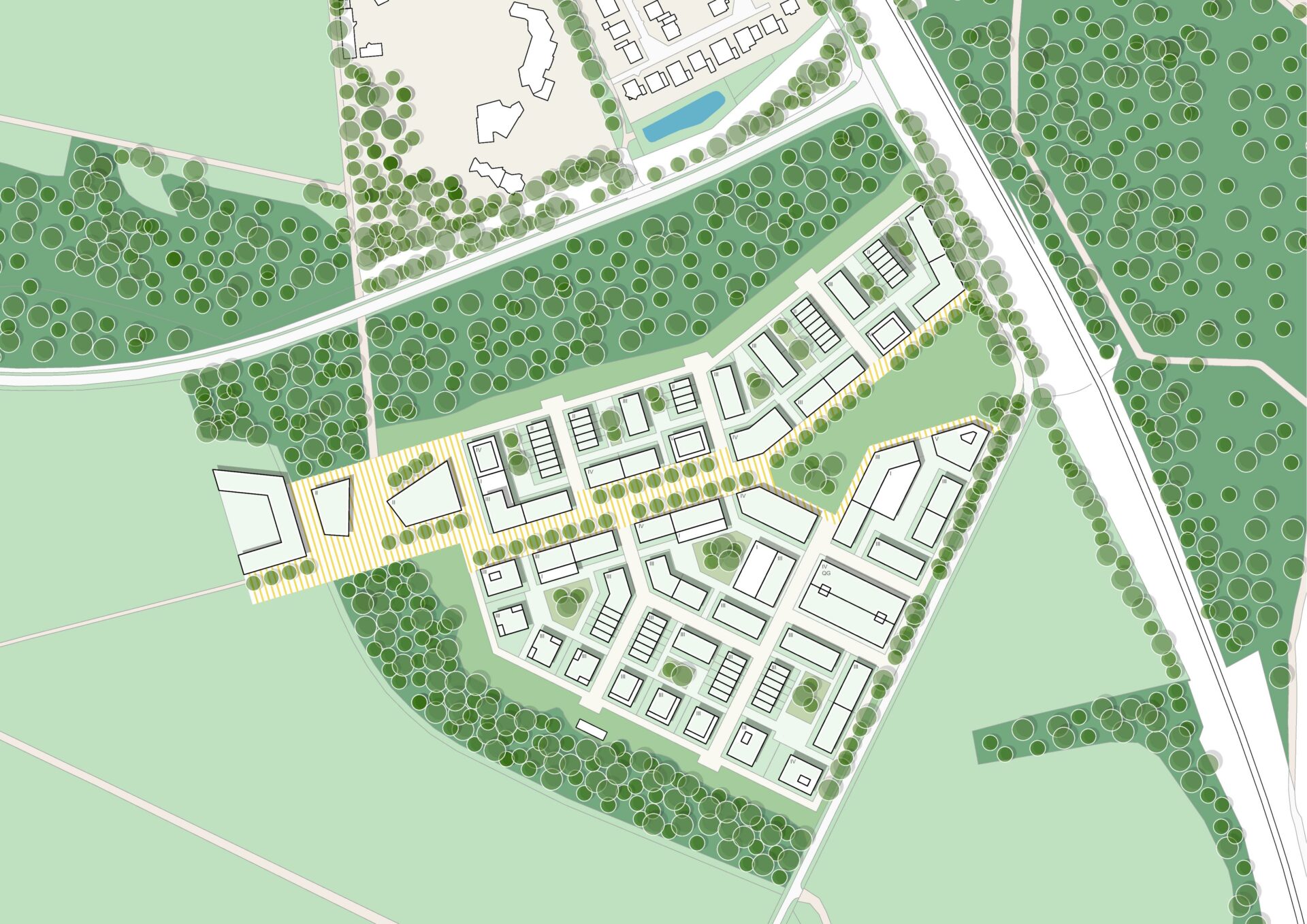 Nach der Erarbeitung eines breiten Spektrums an Szenarien wurden zwei Vorzugsvarianten tiefer ausgearbeitet. Beide Varianten zeichnen sich durch einen effizienten Umgang mit der vorhandenen Fläche, einem geringen Versiegelungsgrad und der Integration von großflächigen sowie kleinteiligen Retentionsbereichen aus. Darüber hinaus wurde auf ein gutes A/V-Verhältnis der Gebäude geachtet um eine möglichst hohe Energieeffizienz zu erreichen. Das Mobilitätskonzept ist darauf ausgelegt möglichst fuß- und radfahrerfreundlich zu sein. Dank einer Quartiersgarage am Quartierseingang kann der öffentliche Raum gänzlich von ruhendem Verkehr freigehalten werden.