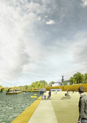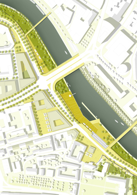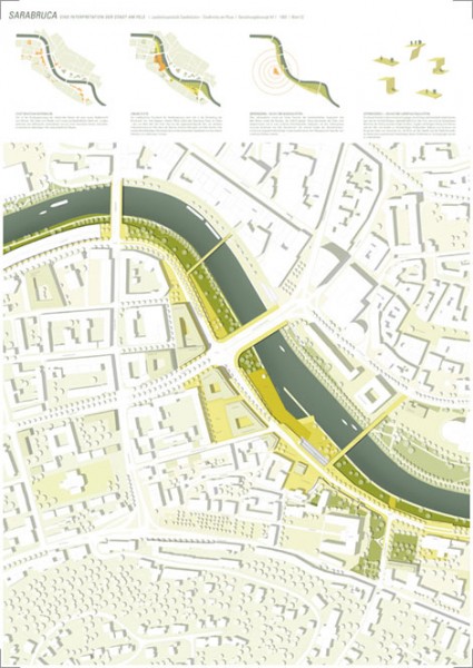 Saarbrücken als Metropole des geplanten Eurodistriktes Saar-Mosel, in dem 1,1 Millionen Menschen leben, entdeckt seine Stadtmitte und die Ufer der Saar neu und beabsichtigt die Verlegung der die Saar begleitenden Autobahn in einen Tunnel. Im Rahmen eines VOF-Verfahrens hat die Stadt in einer kooperativen Wettbewerbsphase den Saarraum in der Stadtmitte und hier vor allem das westliche Alt-Saarbrücker Saarufer hinsichtlich seiner städtebaulichen Formatierung, seiner freiräumlichen Gliederung und seiner Verkehrsfunktionen untersuchen lassen.