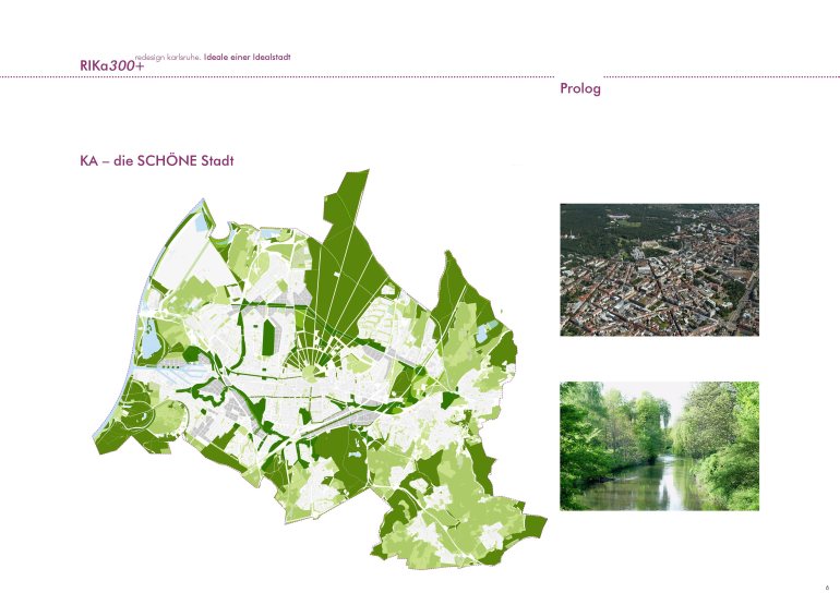 Der Anspruch für die Zukunft muss es sein, diese typische Karlsruher Identität wieder zu entdecken, weiterzuentwickeln und als Karlsruher Ideal zu manifestieren.Das räumliche Leitbild interpretiert Karlsruhe als ideale „Landschafts-Stadt“ innerhalb einer modellhaften Entwicklung.