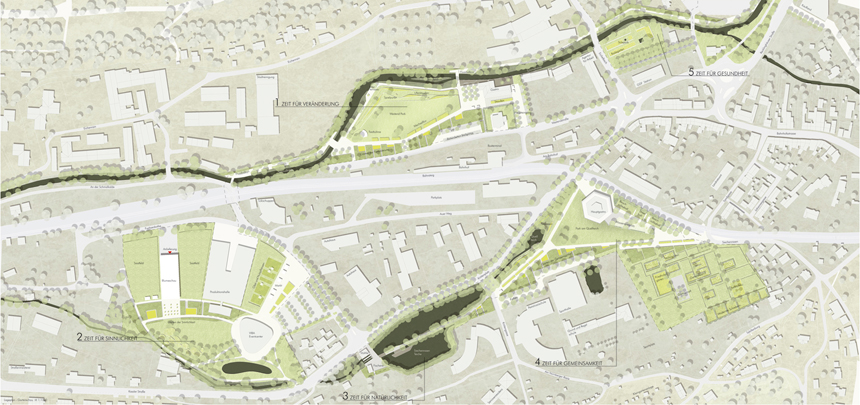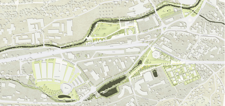 Die neuen Freiräume im Westen Schmalkaldens werden in ihren gestalterischen Merkmalen zu einem zusammenhängenden Parkgewebe verbunden.