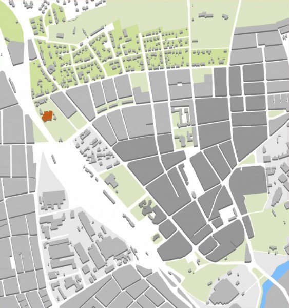 Der neu geschaffene Block zwischen Am Lokschuppen und Merziger Straße entspricht in Größe und Orientierung den umgebenden Blöcken. So wird ein „normaler“ städtischer Block mit allen Entwicklungsoptionen geschaffen, der dem Lokschuppen eine neue Vorderseite zuwendet. Das Freiräumen und Freistellen erlaubt nun von den unterschiedlichen Ankommensrichtungen Blicke auf den Lokschuppen. An der Kreuzung Merzigerstraße/Industriestraße entsteht über die Gestaltung der Blockecke mit einer Spielskulptur und berankten Kuben eine Neugierde, die die Vorbeikommenden in das Gebiet ziehen soll.