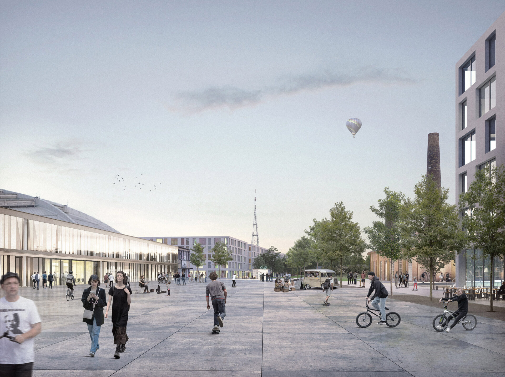 Durch den resilienten Städtebau und die behutsame Eingliederung der neuen Strukturen in den Bestand kann frühzeitig als Impuls für den Wandel ein konsistenter neuer Stadtbaustein mit eigener Identität und Strahlkraft entwickelt werden. Gleichzeitig sichert das robuste Grundgerüst einen schrittweisen Transformationsprozess der bestehenden Nutzungseinheiten.
