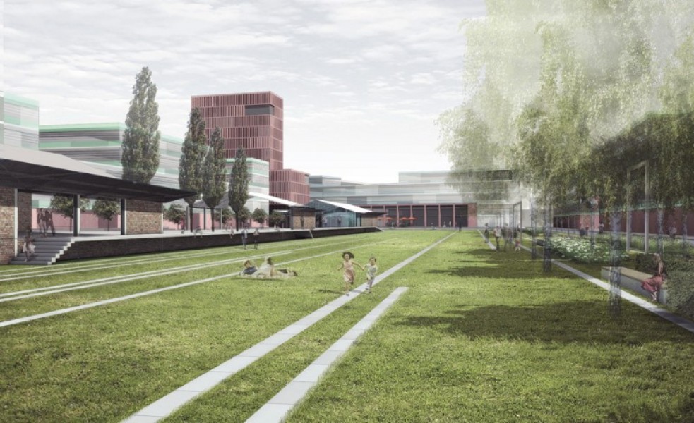 Die vorgeschlagene bauliche Struktur des Stadt-Campus erzeugt ein differenziertes System städtischer Räume. Ist die Entwicklung des Gebiets abgeschlossen, zeichnet es sich durch einen sorgfältig formulierten Kanon aus Plätzen und Park, gefassten Stadtstraßen und zurückgezogenen Hofräumen aus. Stadtbildprägend und identitätsstiftend ist dabei das Gelenk aus der Platzfolge Bahnhof-Science Tower an der Achse Güteramtsstraße mit dem Zollhofgarten. Städtisch steinerner Raum und Grünraum gehen dabei eine spannende Korrespondenz ein. Mit dem Zollhofgarten wird eine Initialzelle, eine grüner Pionier in die Brache eingepflanzt. Am Ende der Entwicklung bildet der Garten das grüne Herz des Quartiers.