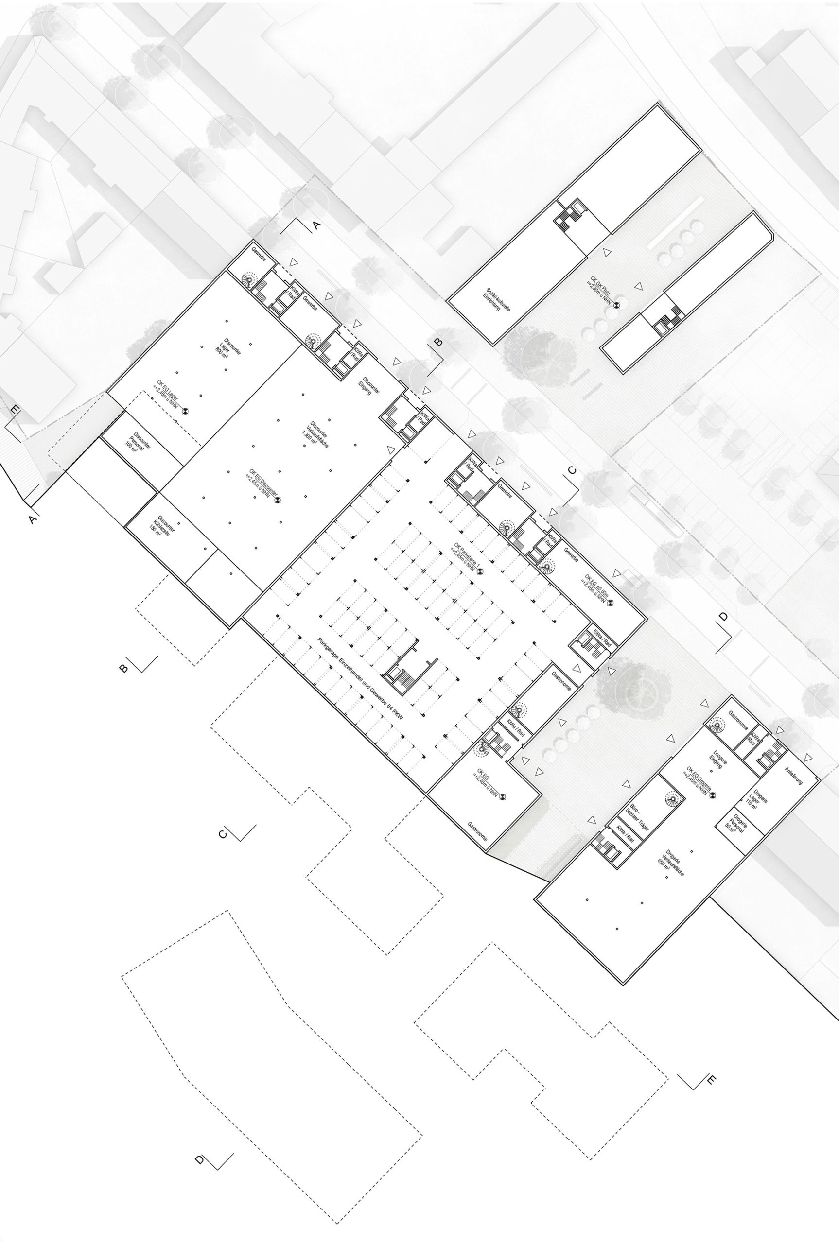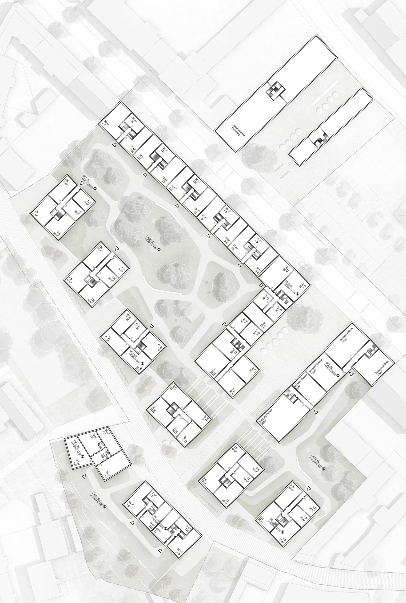 Die großzügigen Sockelgeschosse nutzen die topographischen Gegebenheiten vor Ort und bieten ausreichend Platz für zwei Einzelhandelsmärkte sowie notwendige Parketagen und Mantelnutzungen. Diese großflächigen Nutzungen in den unteren Etagen lösen sich in den oberen Geschossen in differenzierte Einheiten auf. Die Anmutung und Typologie dieser Einheiten knüpft an die Tradition der Flensburger Häuser an und entwickelt gleichzeitig einen eigenen Charakter.